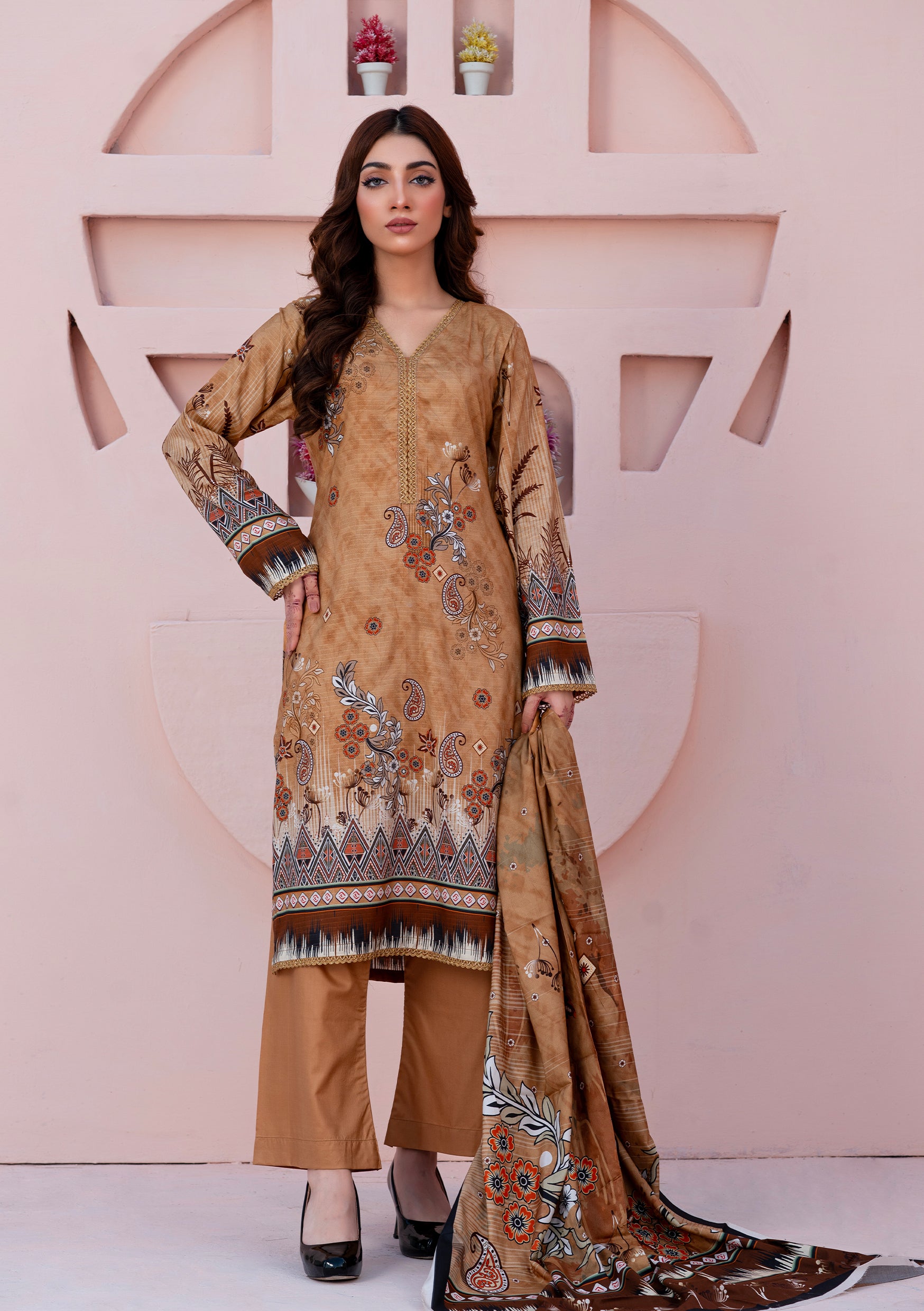 BinNoor Fab Digital Printed Bana Dora linen 3Pcs